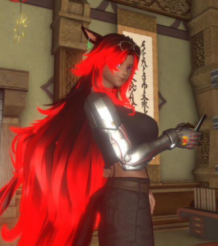 As the years passed, Oris’s Mom became more and more senile, and the young woman, having nowhere else to go, had to take care of her… until the day she eventually passed away, leaving the teenager Miqo’te to care for herself. And so she did. Learning to fight, to work, to survive. And survive she did, up until she turn into a young adult. Her experience taught the woman to fight, and she used that to then become an adventurer, slowly making a name for herself, working on a few odd jobs here and there, and going wherever the wind took her. She eventually joined the Ala mhigan liberation front, and once she manage to take back her homeland… she noticed that it in fact, had nothing left for there there, save from the memories, which lead her to settle down in Ul’dah, where Oris already made a name for herself as a photographer and an Adventurer, not to mention having bought for herself a little cozy place for herself and having meet many friends, and even some Lovers.